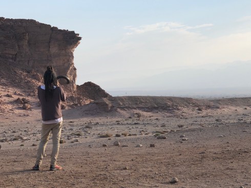 First, a member of our group shared that it was good to take off your shoes and dig your feet into the sand. This allowed my sweaty feet to not only dry, but also he suggested it teaches my feet where I am…thus, informing my whole body where I am and what I’m doing. I loved taking the time to really feel the earth below my bare feet. The desert sand cradling their aches and cracks as well instructing them how to manage the ground.