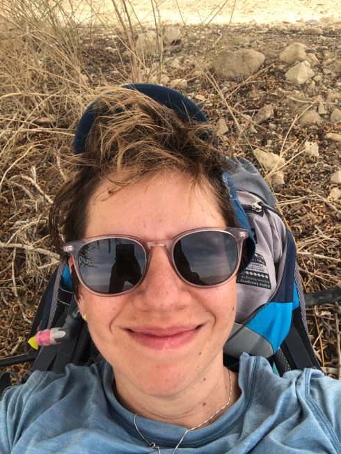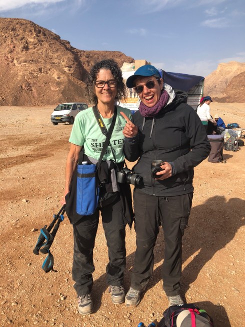 John and Judy gave a group myself and four other women a ride to road 90 where we caught a bus for a couple of kilometers to Kibbutz Yotvata. I didn’t have any chocolate milk (Yotvata is the chocolate milk capitol of Israel), but I did have a cappuccino and a sandwich. 🙂 Then we took out our map and forged our own way to the night camp and the Israel trail. Five hours later…(so maybe it wasn’t the easy day I had hoped for) we arrived to the Israel trail and then the night camp feeling incredibly proud of ourselves. Along the path we forged we saw amazing views and crystals amongst the rocks (perhaps one might be coming home with me even thought I know you are not suppose to take rocks from the land.)